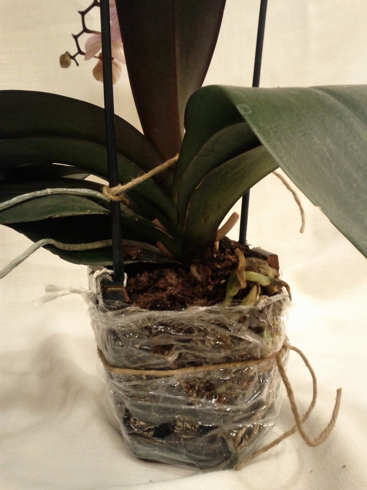 Then....it happened. Reaching over the orchids (on which we have lavished much time, money and concern) to close the window blinds, my elbow caught the support stick and toppled the orchid, pot and all, onto the tile floor. I could almost hear my precious flowering plant whimpering in pain from the trauma.