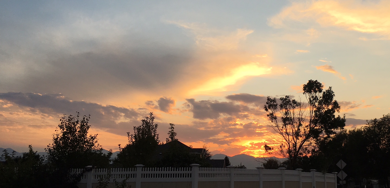 Today I'm grateful for several things. For walks in the evening that allow us to breathe in the cooler air and glimpse the lovely sunsets. I'm grateful for neighbors that allow us to put the need-to-be-refrigerated cakes for the funeral in their garage fridges and ones that loan us their roaster for the same reason. I'm grateful for car accidents that result in no serious injuries - at least as far as we know at this point. The granddaughters seem fine, the car? Not so much. Glad it wasn't their fault, either. (Don't drive sleepy!!) I'm grateful for our cellphones that keep us so easily in touch and send pictures of sweet little ones. And I'm grateful for good memories.