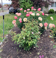 One step - and the powerful sprinkler on a motion detector (which motion detector was undetected by me) came on full blast - right at my back, I wasn't a foot away from it. 😲Jumped back as quick as I could and decided to go around the other way - through the next door driveway. One tiny step toward the peony bush and I got the sprinkler full blast again. That's it. Not smelling those peonies. The Husband theorized the sprinkler was to deter the deer. I'd say it's effective.